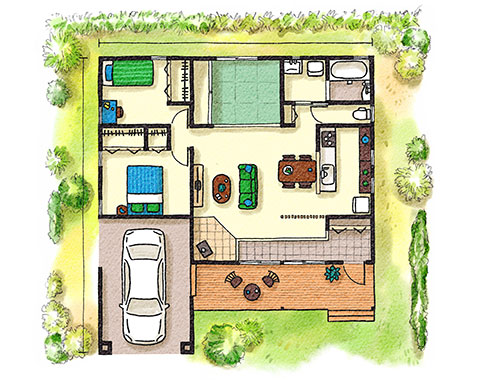 庭とつながる、自然を感じる設計