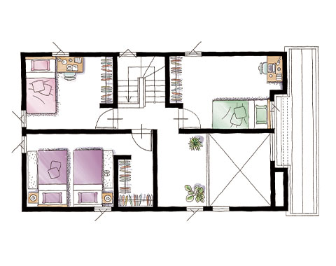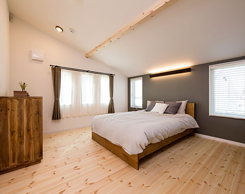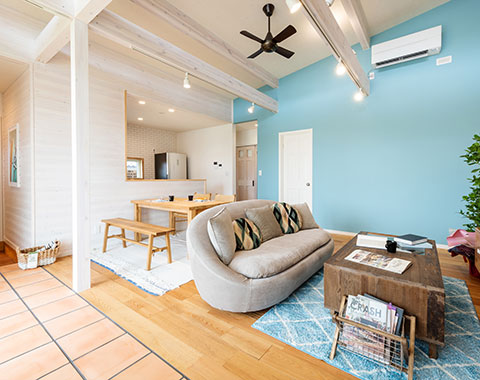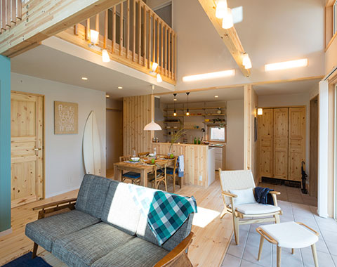 自然素材に囲まれた住まいは、見た目のやさしさだけでなく、空気まで心地いい。天井や床、柱に無垢材を使い、木の香りとぬくもりが毎日をやさしく包み込みます。