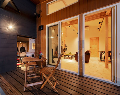 リビングからウッドデッキへと広がる空間は、まるで自然と一体になったような心地よさ。アウトドアリビングや週末のBBQ、キッズプールなど、家にいながら外遊びが叶う暮らしです。